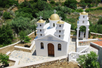 Net voor je Aperi binnen rijdt zie je rechts van de weg een smeedijzeren hek waarachter een pad naar beneden loopt. Er boven uit steekt een goudkleurige koepel. Het hek is niet altijd open maar indien wel kun je dit bijzondere kapelletje ook van dichtbij bewonderen.