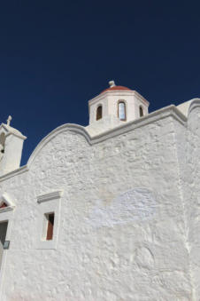 Vanaf deze plek volgen we de weg verder zuidwaarts.Na enkele kilometers komen we weer een kapelletje op een heuvel tegen, het Agia Kyriaki-kerkje. Ook hier vandaan heb je een mooi uitzicht over de kust en landinwaarts. In de verte zie je 2 stenen uitkijkposten waar vroeger Italianen gelegerd zouden zijn.Ook hier is een volksfeest op 7 juli.Ga je nog verder door dan gaat de weg over in een met betonnen platen bedekt pad welke aan weerszijden begroied is. Uiteindelijk komt deze weg uit op de kustweg van Pigadia richting vliegveld.