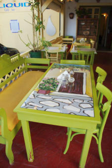Anemoussa is een Italiaans restaurant, gelegen in de haven van Pigadia. Dit restaurant is bij uitstek geschikt als je een keer iets anders wilt eten als Grieks.Vanaf het restaurant heb je een fantastisch uitzicht over de haven en boulevard.Het restaurant is sfeervol ingericht met oude decoraties zoals op de foto’’s te zien. Naast vele soorten pizza’’s hebben ze hier ook pasta- en visgerechten. Hier hebben we ook een heerlijke rijst, op Chinese wijze bereid, gegeten en spaghetti met grote garnalen en mosselen. Voor een indruk bekijk de foto’’s hieronder.