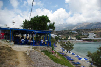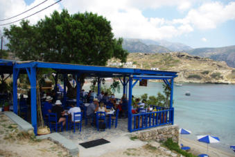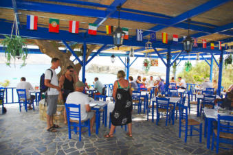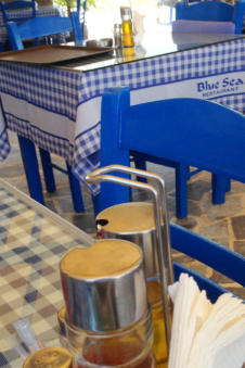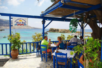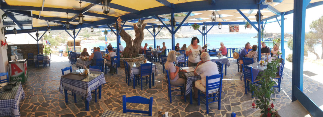Blue Sea Restaurant & Pizzeria Lefkos ligt pal aan het mooie zandstrand aan de linkerkant als je Lefkos binnen rijdt. Van hieruit heb je een prachtig zicht op de baai.Je kunt hier proeven van hun diverse pizza's, lokale gerechten zoals Gyros en Souvlaki in verschillende combinaties.Telefonisch bestellen zoals diverse salades en andere smaakvolle hapjes is ook mogelijk.De vriendelijke eigenaar Nikos Peros serveerde ons verrukkelijk berggeitenvlees met smaakvolle rijst.Zij beschikken ook over een schitterend appartementencomplex in Lefkos:Appartementen Yialos Village.