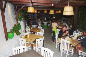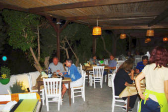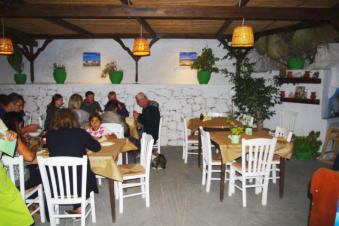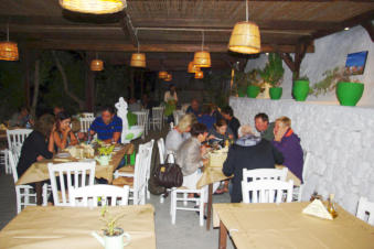 Er zijn gasten die in Arkasa verblijven en hier iedere avond gaan eten.