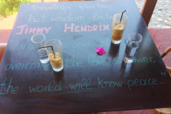 Tijdens een wandeling langs het kustpad in Amoopikwamen we Pebbles Bar tegen. Deze locatie trok al direct onze aandacht vanwege de uitstraling en muziek die er gedraaid werd.De hele inrichting is gebaseerd op muziek. Tafeltjes in de vorm van een gitaar, lp’s aan de muur, posters, etc. Je gaat hier echt terug in de tijd.We hebben hier de lunch gebruikt en meteen een paar uur gezeten en genoten van de muziek.Je vind Pebbles Bar recht tegenover Votsalakia Beach, naast restaurant Meraki.