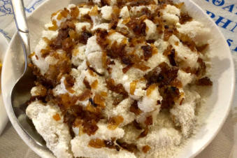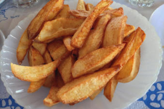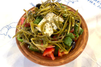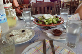 “Rina’s Taverne ligt in Afiartis aan de kustweg richting vliegveld. Van hieruit heb je een uitzicht op zee en in de verte de luchthaven.Het is hier een paar graden koeler dan in Pigadia vanwege de wind die hier altijd staat.Binnen hangen enkele handgemaakte lyra’s die je ook kunt kopen.Hier serveren ze de echte Karpathiotische- worstjes, heerlijk gekruid, Zucchiniflowers en Makarounes. In 2018 voortreffelijke Black Calamaris hier gegeten.