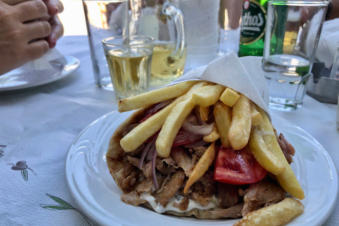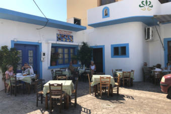 Restaurant Taka Taka Mam ligt midden in Arkassa aan een pleintje. Hier kun je heerlijk rustig op een terrasje zitten. Tussen de middag hebben wij hier de