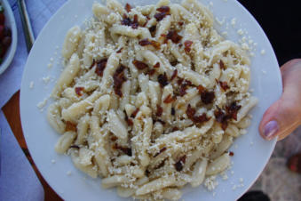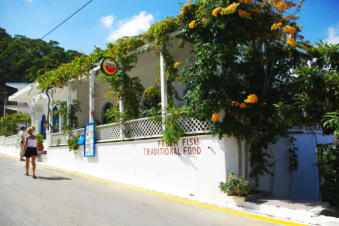 Als de excursieboten aankomen in Diafani gaan de meeste toeristen eten bij de restaurants aan de haven.
