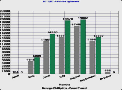 Op onderstaande grafieken is te zien hoeveel toeristen er komen op Karpathos en van welke nationaliteiten. Sinds 2014 is er weer een stijging te zien sinds de