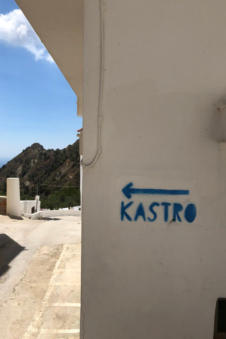 Wanneer je Volada binnenrijdt zie je lnks van de weg een klein kapelletje. Rechts van dit kapelletje begint een pad welke richting Kastro voert.Over de flank van de berg is een voetpad aangelegd welke omhoog voert naar een klein kapelltje midden op de berg.Van hieruit heb je een weids uitzicht over Aperi en in de verte Pigadia aan de baai.De auto parkeer je het best op de centrale parkeerplaats midden in het dorpje bij de scherpe bocht naar links.