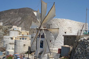 Door een Google-melding over Karpathos kwam ik bij toeval op een Nederlandse website van een zeilmakerij. De eigenaar Sipke Koning, van Koning Molenzeilen, heeft in 2009 8 zeilen gemaakt voor een van de molens op Olympos.Hieronder volgt zijn relaas over hoe dit stond kwam.Het verhaal is dat we op vakantie waren op Karpathos. Met een jeep zijn we het hele eiland over gecrost waarbij Olympos een doel van ons was, want we wisten dat er veel molens staan. Na wat te hebben rondgekeken kwamen we bij Bill, een oude enthousiaste molenaar, die veel vertelde over zijn molen. Zijn zeilen waren aan vervanging toe en ik vertelde over mijn beroep van molenzeilmaker. Na adressen en tel.nrs uitgewisseld te hebben zijn we weer vertrokken. Een paar dagen later belde hij op dat hij belangstelling had voor zeilen van mijn bedrijf. Weer een auto gehuurd en de molen bezocht. Na de zeilen te hebben opgemeten en wat details te hebben doorgesproken ( de man sprak behoorlijk Engels, hij had vroeger gevaren) gingen we met wat molengegevens naar huis.Ik heb twee zeilen gratis voor hem gemaakt in verschillende uitvoeringen en opgestuurd naar Olympos Karpathos. De man was erg verrast over de kwaliteit. Toen begon zijn zoon zich er mee te bemoeien, die was piloot en vliegt veel op Düsseldorf. Ze waren geïnteresseerd in de andere 6 zeilen. Na veel heen en weer te hebben gemaild werden de andere 6 zeilen besteld.Doek gekocht, gemaakt en toen ze klaar waren, hebben we ze per DHL opgestuurd naar Düsseldorf, naar een bekende van de piloot. Die heeft er voor gezorgd dat de zeilen op Karpathos terecht kwamen en uiteindelijk op de molen.Geen problemen gehad met de betalingen door deze mensen en ze waren dik tevreden.Voor mij was het een aardigheid om toch een molen in Griekenland te voorzien van Koning Molenzeilen uit Leeuwarden.Sipke Koning